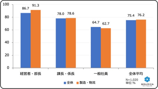 製造・物流の経営者・部長に限ると75.7%に達し、全体の経営者・部長を3.9ポイント上回っています。仕組み化や外部活用を志向しながらも、属人化は依然として残っており、理想と現実のギャップが存在しています。