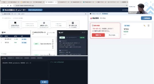 DAY1のオンライン講座では、Webアプリケーションの基本構造や、Vibe Codingの考え方を学びました。参加者は、フロントエンド・バックエンド・データベースという役割の違いを理解しながら、「どの変更がどの程度の工数や難易度につながるのか」という、開発を依頼・判断するうえで重要な視点を身につけました。