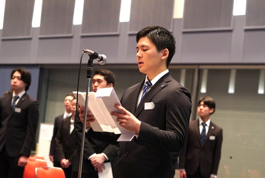 新入社員代表が1名登壇。「ギオンの一員として、地域社会の生活を支える責任を全うしたい」という力強い決意を表明しました。