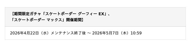 「iOS」および「Android(TM)」端末向けに好評配信中のスマートフォン向けRPG『ディズニー ピクセルRPG』にて、新キャラクター「スケートボーダー グーフィー EX」、「スケートボーダー マックス」がラインナップされた期間限定ガチャが、2026年4月22日(水)より登場いたします。