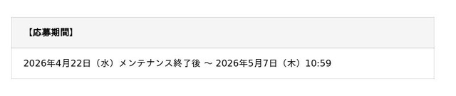 ※詳細は公式Xまたはゲーム内お知らせをご確認ください。