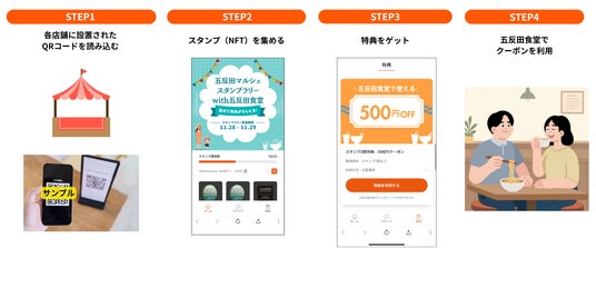 - 参加方法:会場設置QRコードを読み取り→アンケート回答→NFT受け取り→500円クーポン取得