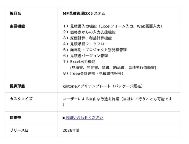 株式会社メディアフュージョン(本社:大阪市北区)は、自社業務で数年間にわたり改良を重ねてきた Excel前提の見積書管理システムを汎用化し、kintoneアプリテンプレートとして提供する「MF見積管理DXシステム」を 2026年夏に提供開始します。