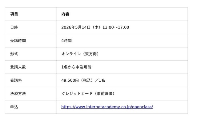 申込URL:https://www.internetacademy.co.jp/openclass/