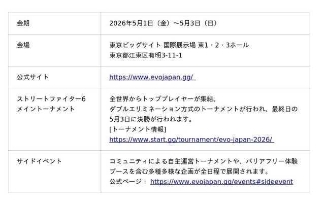 バリアフリーeスポーツを提唱する株式会社ePARA(本社:埼玉県戸田市、代表取締役:加藤大貴)は、2026年5月1日(金)から5月3日(日)まで東京ビッグサイトで開催される世界最大級の格闘ゲーム大会「EVO Japan 2026 presented by レバテック」において、バリアフリーeスポーツプレイヤー5名が『ストリートファイター6』(以下、スト6)部門に出場することをお知らせいたします。