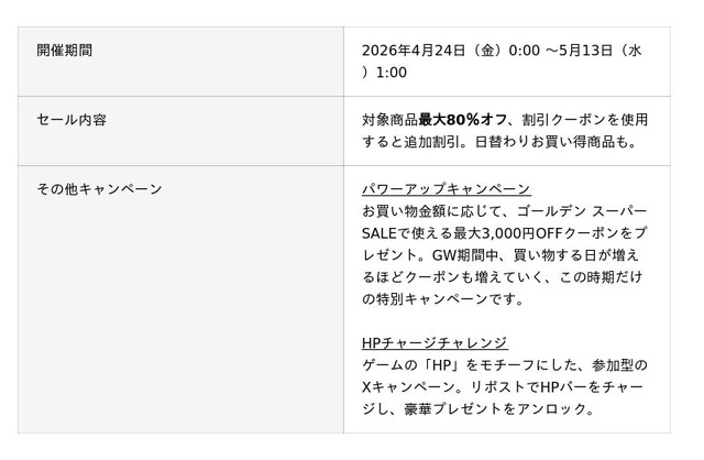 ■本日発売!ゴールデン スーパーSALE 限定商品ラインナップ