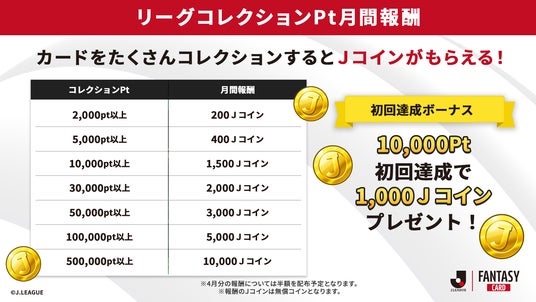 「All ClubsコレクションPt(リーグコレクションPt)」の月末時点の累計Pt数に基づき、毎月報酬を配布します。