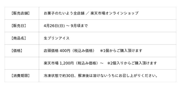 株式会社太陽社(所在地:千葉県匝瑳市飯倉293、代表取締役:片岡正裕)が展開する千葉県で長年愛される菓子店「お菓子のたいよう」は、伝説のヒット商品「生プリンアイス」を、今年も4月26日(日)より夏季・数量限定で復活販売いたします。初登場時には、発売開始わずか数秒で完売。あまりの反響に生産が追いつかず、多くのお客様をお待たせしてしまった“幻の味”が、この夏ついに帰ってきます。