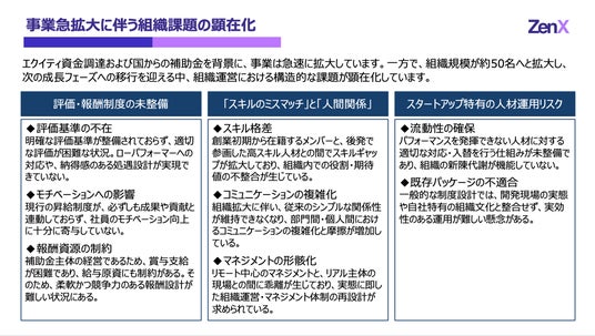 こうした成長企業の成長制約を解消し、非連続成長を支える組織基盤づくりを目的に、ZenStrategy HRを本格展開いたします。