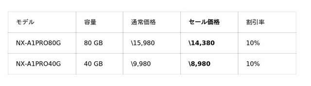 また、ハイアマチュアからエントリー層まで、幅広く支持をいただているCFexpress Type A/BメモリーカードのSEシリーズもセール対象です。CFexpress Type Aメモリーカード「NX-A2SEシリーズ」、CFexpress Type Bメモリーカード「NX-B3SEシリーズ」が、各容量20%OFFでお買い求めいただけます。