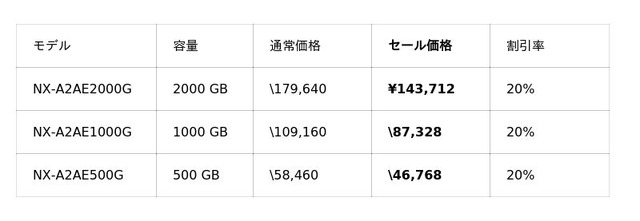 Amazon Nextorage公式ストア セール対象商品ページ ▷