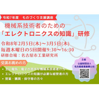 令和7年度 機械系技術者のための「エレクトロニクスの知識」研修のご案内 エレクトロニクス化を実践する上で、最小限必要な事項を選定し、さらに内容の程度を適度に抑えて極力平易に解説します。