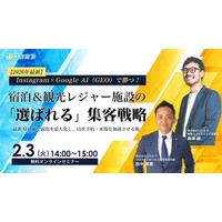 2月3日(火)14:00より、Instagram×Google AI(GEO)で勝つ!宿泊&観光レジャー施設の「選ばれる」集客…