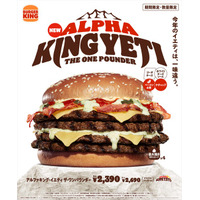 バーガーキング(R)から今年は一味違う超大型バーガー「イエティ」が襲来!ビーフ4枚×ゴーダチーズ4枚×チーズソースに、ベーコン4枚とケチャップを加えた『アルファキング・イエティ ザ・ワンパウンダー』新発売
