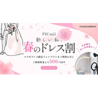 セルフ写真館『PICmii』PLACOLE&DRESSY プロデュースの横浜店・名古屋店・大阪店にて4月『新しい私、春のドレス割』実施決定!