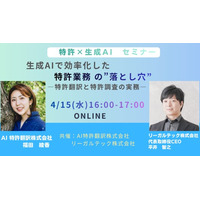 【2026年4月15日(水)16時開催@オンライン】特許×生成AIセミナー