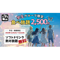 【牛角】学生グループ限定!食べ飲み放題「2,500円」ポッキリ!期間限定で「ソフトドリンク飲み放題」が無料に~この春、青春の思い出に。学生だけの特別時間を~
