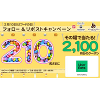 2,100円分の「 Uber Eats (ウーバーイーツ)ギフトカード」が210名さまに当たる! 2月10日(フードの日)に合わせてXキャンペーンを開催! バンダイナムコのカプセルトイ専門店