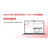 monolyst、「FAX AI-OCR」サービス開始から累計10万枚のデータ化を突破し1.5万時間のムダを削減