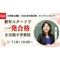 【TAC行政書士】新年スタートで国家資格に挑戦しよう!一発合格するための学習法とは?無料オンラインセミナー1/7(水)開催!