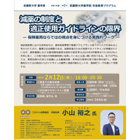 【武蔵野大学】生涯探求。卒業後も学びを深めることを応援 薬学部卒後教育プログラム「減薬の制度と適正使用ガイドラインの限界-保険薬局ならではの視点を身につける実践的ワーク―」を2月12日(木)に開催