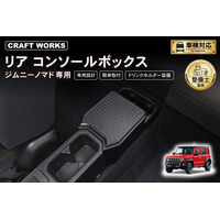 ジムニーノマド JC74専用 リアコンソールボックス予約開始。車種専用設計で、まるで純正のようなフィット感。抜群の収納力で、快適な車内空間を提供。ドリンクホルダー2個装備で後席空間を快適に!