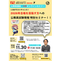 【TAC公務員】「いまがラストチャンス!2026年合格を目指す方への公務員試験情報特別セミナー」を11/30(日)にオンラインで開催