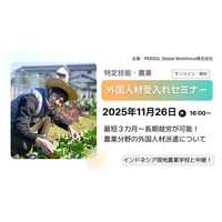 11月26日(水)【特定技能・農業】外国人材受入れセミナー開催!最短3カ月から長期就労の対応も可能!