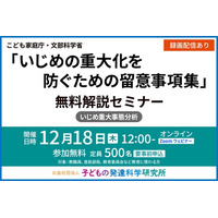 【教育関係者向け】こども家庭庁・文部科学省「いじめの重大化を防ぐための留意事項集」無料解説セミナー(いじめ重大事態分析)12/19(金)13時半~