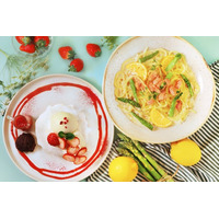 「春いちごのもちふわパンケーキ」と「アスパラとスモークサーモンのレモンクリームパスタ」 ふ…