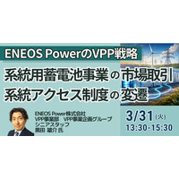 【JPIセミナー】「系統用蓄電池事業の市場取引・系統アクセス制度の変遷とENEOS Power(株)のVPP戦略」3月31日(火)開催