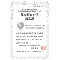 バリューデザイン、健康優良企業「銀の認定」を取得