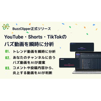 【バズ動画リサーチを数日から“数秒”へ】YouTube・TikTokトレンド解析SaaS『BuzzClipper』正式リリース。AIが“参考にできるバズ企画”を自動提案