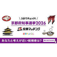 選挙ドットコムは京都新聞社と共同で京都府知事選挙2026投票マッチングを公開しました(4月5日投票)