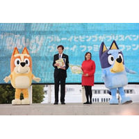 本日、神戸市の姉妹都市であるブリスベン市を舞台にしたアニメ「ブルーイ」のキャラクター・ブルーイとビ…
