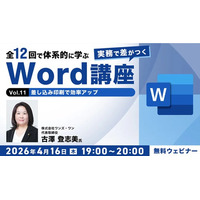 【Word中級者】差し込み印刷、校閲など機能を使いこなして業務の質を高めよう!4/16(木)・4/30(木)無料セミナー「実務で差がつくWord講座 Vol.11・12」開催