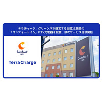 テラチャージ、グリーンズが運営する全国21施設の「コンフォートイン」にEV充電器を設置、順次サービス提供開始