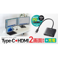 PD充電対応、2画面出力可能なUSB Type-C→HDMI変換アダプタを発売