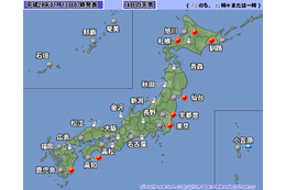 気象庁が2日朝に発表した予報によると、ゴールデンウィーク中の3日から4日、西日本から東日本の広い範囲で非常に強い風が吹き、海はしけるところがある。気象庁は警戒・注意を呼びかけている。3日は九州で非常に激しい雨の降るおそれがあるという。