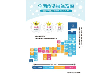 パナソニックが、「食器洗い」および、「食器洗い乾燥機」に関する意識・実態調査を実施した。食器洗い乾燥機の普及率は“西高東低”という傾向があることなどがわかった。