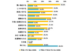 母親たちが、家庭で「夫に手伝ってもらっている」ことは…