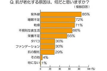 トレンド総研は27日、「肌の老化」に関する調査結果を公表した。調査期間は9月6日~9日で、20~29歳の女性500名を対象に実施した。あわせて、美容に関する職業に従事している女性美容家62名に対しても「ファンデーション」に関する調査を実施した。