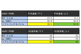 最新AQUOS PHONE速度調査、ソフトバンクが最速に……全国主要5都市75ヵ所で調査