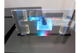 CEATEC JAPAN 2014でのオムロンのブースには、世界初となる透明なプレートを用いた三次元静止画像の投影技術が展示されている。